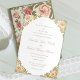 Cette invitation romantique est parfaite pour un mariage, une douche nuptiale ou tout autre événement spécial. Décoré de roses de thé et de feuillage dans un style art déco, il est décoré dans des tons rose rose et vert sauge. Les accents de papier métallique et la police de calligraphie par script apportent une touche spéciale. Ce design apportera un sourire à vos invités et leur rappellera l'amour.