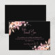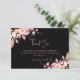 This thank-you card features soft blush and peach roses on a deep black background, creating a warm and romantic style that pairs beautifully with the rest of the Floral Black & Blush Rose wedding suite. The gentle floral artwork gives the card a soft and heartfelt feel, perfect for expressing your gratitude. The clean layout gives you space to write a thoughtful message for your guests and make them feel appreciated.