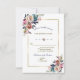 Elégant design avec délicat bleu poussiéreux, brumeux bouquets de fleurs à l'aquarelle rose, un faux cadre de feuille d'or, sur un arrière - plan blanc, typographie d'écriture ; sur le dos un arrière - plan bleu marine, aussi. Un grand choix pour les mariages de toute saison, surtout pour les mariages d'automne ou d'hiver. Utilisez l'outil Personnaliser pour ajouter vos informations et modifier les couleurs des polices. Pour les articles correspondants, s'il vous plaît, visitez ma collection de fleurs Roses bleu foncé Dusty.