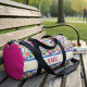 This vibrant duffel features a dense wildflower meadow pattern that brings a burst of artistic energy to your travel essentials. The bold floral design is accented by a clean monogram strip, making it a sophisticated choice for gym sessions or quick overnight trips. It is the perfect stylish companion for the woman who loves modern botanical aesthetics and organized travel.