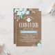Individuell anpassbare Einladung zur Kommunion mit blauen Aquarellfarben-Blume auf einem Rutschhintergrund.