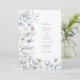 Venez fêter l'amour et la nature avec notre Faire-part de mariage Floral Boho Blue. Cet invitation exceptionnel et unique insuffle une touche de chic boho avec de magnifiques fleurs sauvages aquarelles peints à la main dans des teintes douces de blues pâles et poussiéreuses, complétées par des tanins terreux. Notre modèle facile à customiser vous permet d'insuffler votre voix personnelle en la faisant vraiment vous-même. Ce bel invitation est parfait pour des mariages romantiques et élégants à tout moment de l'année ! (Texte tan foncé.)