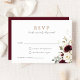 Carte RSVP de mariage blanc bordeaux floral. Élégante carte de réponse du Mariage Merlot Floral Blanc
