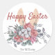 Adorable Aquarellblütenohr mit Blume und Eiern Osterrunde Aufkleber. Personalisieren Sie den Stil und die Größe des Schriftartes.