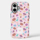 Floral Cheshire Cat Pattern Pink Monogramm iPhone 16 Hülle