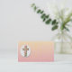 Joli art victorien d'une croix en roses roses et fleurs marguerites blanches sur un ovale blanc d'arrière - plan de fausse toile. Cliquez sur Customiser pour sélectionner vos polices, ajouter votre texte, même enregistrer votre conception pour plus tard.