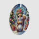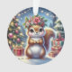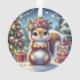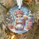 Celebrate the season with this enchanting ornament featuring a wide-eyed squirrel adorned with a festive floral crown. Standing upright with its fluffy tail curled behind, the squirrel is surrounded by a glowing Christmas tree decorated with pink ornaments and nestled among colorful wrapped presents. Twinkling lights and a snowy backdrop complete this magical woodland scene—perfect for adding charm and cheer to any holiday celebration.
