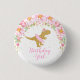 Floral Dinosaur T-Rex Birthday Girl Gast of Honour Button