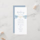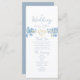 Élégant, botanique, floral, moderne, boho double face bleu pâle programme de mariage avec coeur de cordes d'or, fleurs sauvages périwinkle et script de calligraphie simple.