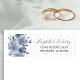 Die links Seite dieses romantischen, modernen Hochzeitsaufenthalts-Rücksendelabels zeichnet sich durch einen staubblauen Blumenstrauß in Aquarelltönen aus. Der anpassbare Text kombiniert handgeschriebene Holzkohle mit Schriftart auf weißem Hintergrund.