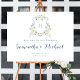 Floral Elegant Dusty Blue Crest Mariage Affiche de bienvenue. Affiche de bienvenue Mariage bleu Dusty. Fleurs blanches Vert Aquarelle Mariage Poster