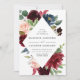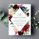 Un élégant faire-part de mariage floral vous invite à découvrir des noms et des détails mariages encadrés de fleurs d'aquarelle bordeaux, rose roux et bleu marine, agrémentées d'un feuillage vert luxuriant. L'envers des invitations comporte un arrière - plan bleu marine en option.