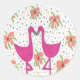 Fun Blumendruck mit rosa Flamingos und Polka Punkte.