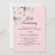A soft pink colored background. Decorated with a white floral, peony flower and green watercolored eucalyptus greenery. Personalize and add your names and the details