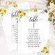 Aidez vos invités à trouver leur table avec cette élégante carte moderne de plan de salon avec les noms des invités. Cartes recto-verso pour que les clients puissent chercher leur nom à l'avant ou à l'arrière. Libérez de l'espace tout autour en vous donnant la liberté d'utiliser des clips ou un trou de perforation pour accrocher des écrans, ou d'utiliser le support/cadre de table. Eléments de calligraphie manuscrits modernes et de beaux détails floraux jaunes, ocres et moutardes. À COMMANDER : veuillez placer et commander individuellement pour chaque table, remplir la carte avec les noms des invités pour la première table, puis ajouter dans votre panier. Revenez et remplissez le deuxième numéro de table et les noms d'invités, ajoutez au panier et répétez jusqu'à ce que toutes vos tables soient terminées, puis passez au paiement. Une partie de notre "Beautiful Yellow and Ochre Floral Collection" avec une variété de produits de coordination disponibles. Visitez la collection entière à l'adresse suivante : https://www.zazzle.com/collections/beautiful_yellow_and_ochre_floral_collection-119581608931129846