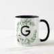 This coffee mug features a clean floral leaf design surrounding a bold letter G initial, creating a simple and elegant look for everyday use. The design is printed in high resolution on a durable ceramic mug with a smooth surface and comfortable handle.
