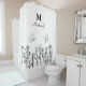 Floral Line Art Custom Monogram Duschvorhang