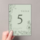 Cadre d'art floral moderne sauge vert mariage acrylique numéro de table.
