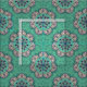Ein Design von handgezeichneten Mandala-Blume in einem dekorativen Stil, in einem nahtlosen symmetrischen Muster angeordnet. Farbig in den Farben Minzgrün und helle Lavendelpühlen.