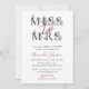 Invitation à la douche nuptiale minimaliste sur le thème avec Miss à Mme & délicate noir & blanc floral.