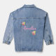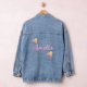 Niedliche Denim-Jacke für Frauen oder Teenager personalisiert mit Namen in Rosa und Wildblumen.