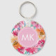 Der Girly Key Ring mit Monogramm weist ein Aquarellmuster und eine rosa und weiße Monogramm auf.