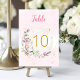 Aquarellfarbener Blumenmoon Rosa Tischnummer.