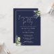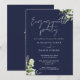 Floral Navy Blue Script Engagement Party Einladung