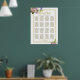 Faites de votre réception de mariage une belle avec ce tableau de 16 places. Il présente du texte en or sur un arrière - plan blanc avec une bordure carré décalée en or et un beau bouquet pastel printanier de fleurs comprenant des roses roses, des lys et orchidées blancs calla, et des hydrangées violettes ou lavandes claires. Le texte inclut le nom du couple et la date du mariage, et est entièrement personnalisable. Ce tableau montre les assignations des sièges de table afin que vos invités puissent facilement trouver la bonne table.