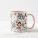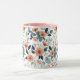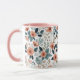 This beautiful design features a pattern of flowers illustrated in coral and peach tones, with blue and teal leaves. Perfect for gifting on Mother's Day, weddings, for a friend or to enjoy a coffee.