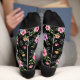 The delicate watercolor-style blossoms combined with cute paw prints create a charming and cozy aesthetic — ideal for everyday wear, lounging at home, or gifting to a fellow pet lover. The black heel and toe contrast adds a stylish modern finish.