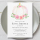 Mit dieser hübschen Einladung laden Sie Ihre Familie und Freunde zur Kinderdusche ein. Es ist mit einem Kürbis in Wasserfarbe, rosa Rosen und grünem Blattwerk dekoriert. Original Wasserfarbe © Michele Davies.