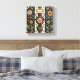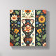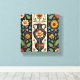 Floral pattern with a vase in the center column, surrounded by two columns of flowers and leaves, symmetrical arrangement, dark background with colorful accents, vintage style, decorative design.