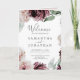 Dieses florale Hochzeitsprogramm ist perfekt für eine elegante Hochzeit. Das moderne rustikale bohobische Design besticht durch romantische Aquarellfarben in sanften Farbtönen wie Bordeaux, Lila, Rosa und Cremeweiß mit grünen Blätter.