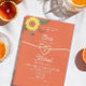 Moderne - rétro, élégant, bohème, coloré orangé floral et rose faire-part de mariage magenta avec coeur de corde or romantique, tournesol, dos monogramme et script de calligraphie manuscrite tendance.