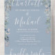 Floral Script QR Code Dusty Blue Wedding All In One Einladung