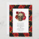Die gotische Hochzeitseinladung in Rot, Schwarz und Gold mit einem mit rote Rosen geschmückten Schädel und einem dramatischen Rose-Muster. Das Foto auf der Rückseite ist optional. Wenn Sie es lieber entfernen möchten, scrollen Sie unten in "Personalisieren Sie diese Vorlage" und klicken Sie auf "Bearbeiten mit dem Entwurfswerkzeug". Im Entwurfswerkzeug können Sie Text- oder Designelemente bearbeiten, skalieren, löschen oder verschieben, die Sie wünschen.