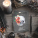 Eine äußerst elegante Halloween-Karte mit einem Schädel, der mit roten Pappeln, sanften Blumen und einem zarten Schmetterling auf einem texturierten grauen Hintergrund geschmückt ist. Das "Happy Halloween"-Drehbuch fügt eine gotische und dennoch raffinierte Touch hinzu, die sich perfekt für saisonale Grußveranstaltungen, Oktober-Geburtstage oder gotisch inspiriert Veranstaltungen eignet. Bleiben Sie bei Ihrer persönlichen Nachricht drinnen.
