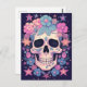 Eine bemerkenswerte Postkarte mit einem Schädel, der mit lebhaften Blume geschmückt ist und von Sternen umgeben ist. Ideal für alle, die das makabre und das wunderschöne Ambiente zu schätzen wissen.