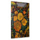 Dieses lebendige Bild verbindet ein Bild mit einer digitalen Kunst, mit leuchtenden, goldgelben und orangefarbenen Blume mit einer faszinierenden, webähnlichen Textur. Die Blume ähneln Rose und anderen Blüten, umgeben von einem Gewirr neonähnlicher Stiele und Blätter in Grün-, Orange- und Rottönen. Der Hintergrund ist dunkel, fast schwarz, was die Lichtwirkung der Blume und des Blattwerks verstärkt. Die kleinen, sternförmigen Lichter sorgen für ein zauberhaftes oder kosmisches Ambiente.