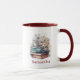 Floral Stacked Books Personalized Burgundy Handle Tasse