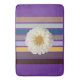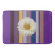Step out in style with this vibrant bath mat from the Botanical Balance collection. Featuring a delicate white bloom against bold vertical stripes in purples, teals, and golden tones, this design adds a refreshing botanical energy to your bathroom. The plush texture offers comfort underfoot, while the colorful palette brightens up any space.