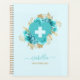 Ein wunderschöner medizinisch thematischer aquamariner blauer Planer mit Blume und Imitaten goldenen Blattmustern. Ideal für Ärzte und Studenten.