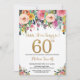 Floral Surprise 60e anniversaire Invitation pour les femmes. Fleur florale aquarelle. Parties scintillant d'or. Rose, Jaune, Orange, Fleur Violet. Anniversaire adulte.