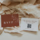 Die Hochzeitskarte RSVP QR Code Response Card zeichnet sich durch boho-Stil, Blumenkunst, Terrakotta-Farbe aus, mit einer Mischung verschiedener Schriftart-Stile, oft in verschiedenen Größen, um einen einzigartigen, eklektischen Look zu schaffen, der die natürliche Ästhetik dieser Einladung macht.