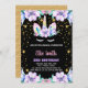 Floral violet noir Unicorne Invitations Anniversaire