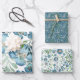 Floral Watercolor Blue Decoupage Geschenk Geschenkpapier Set