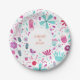 Moderne botanische Aquarellmalerei mit Aquablau und lila wilden Blume auf weißem Hintergrund. Koordination hübscher Teller mit Texten, die zu Anzug Ihrer Feier verändert werden können. Originelle Kunst von Nic Squirrell.