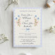 Blue Floral Wedding invitations with beautiful romantic delicate watercolor wildflowers in blue and pink, with soft blue ribbon on a vintage cream scalloped background. Easy to personalize names, and wedding invitation wordings in a lovely script fonts. Pretty country wedding style.
