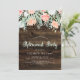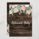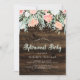 Ces invitations à la retraite rustiques et branchées sont ornées de fleurs et de feuilles couleur aquarelle dans des tons doux de rose, pêche, blanc et bleu, avec un accent moderne de points de faux or, sur un arrière - plan d'aspect de bois marron.